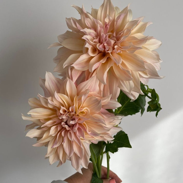 The queen of the dahlia flowers and a worldwide favourite. A large decorative dahlia with big, blousy blooms that vary from antique, blush, pink at the beginning of the season to a soft, warm latte at the end. You can't be without this one!