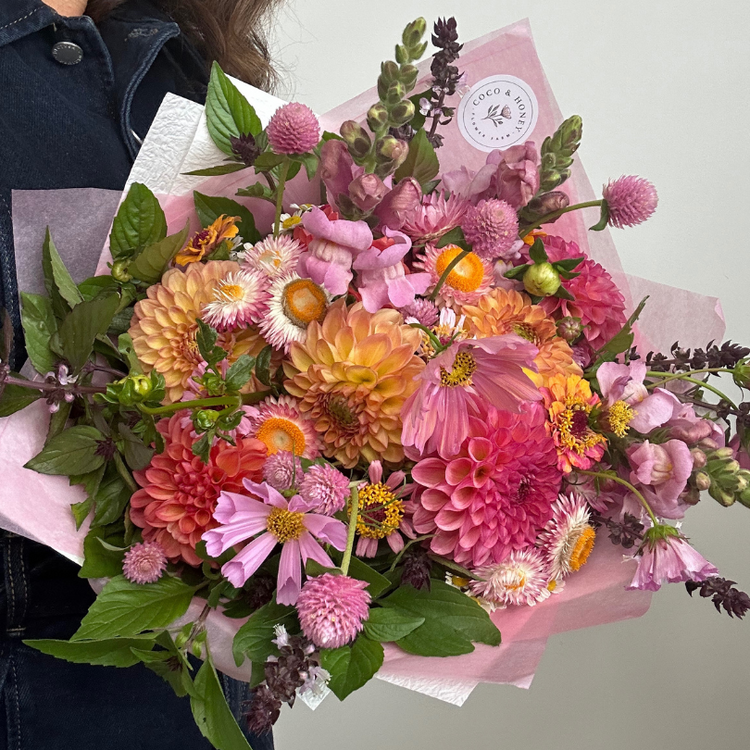 Coco and Honey flower farm arrangements feature our own freshly harvested seasonal flowers. Often, flowers are picked the same morning that customers receive them, allowing you to enjoy our blooms longer. Direct from farm to you.