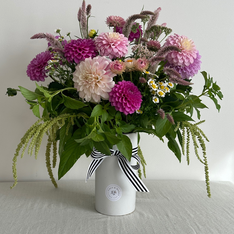Coco and Honey flower farm arrangements feature our own freshly harvested seasonal flowers. Often, flowers are picked the same morning that customers receive them, allowing you to enjoy our blooms longer. Direct from farm to you.