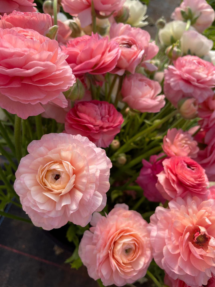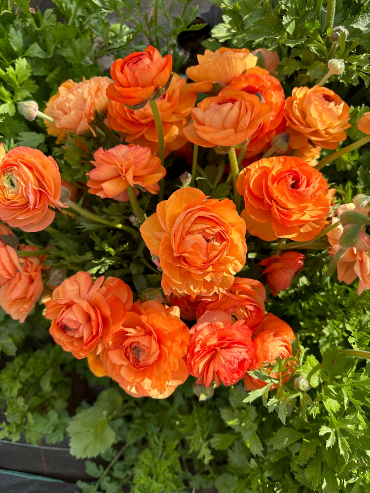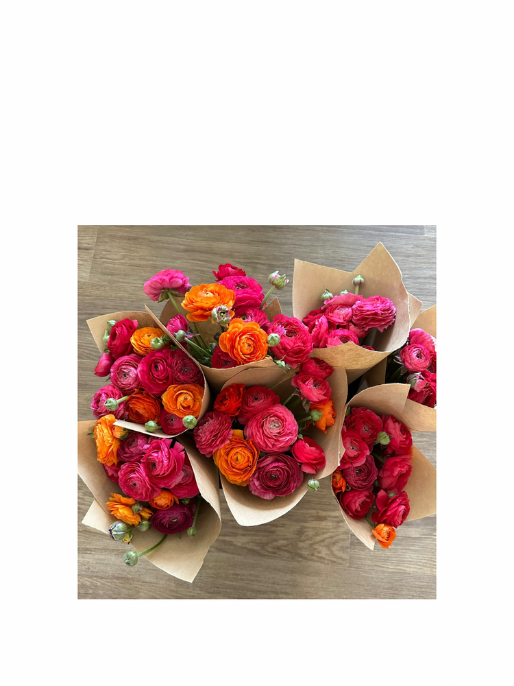 We grow a large variety of seasonal annuals and perennials resulting in an ever-changing selection of flowers available from one week to the next. Spring begins with a customer favourite, the ranunculus, which flower from August to October, and another popular flower, the dahlia’s, flower from January to late April.